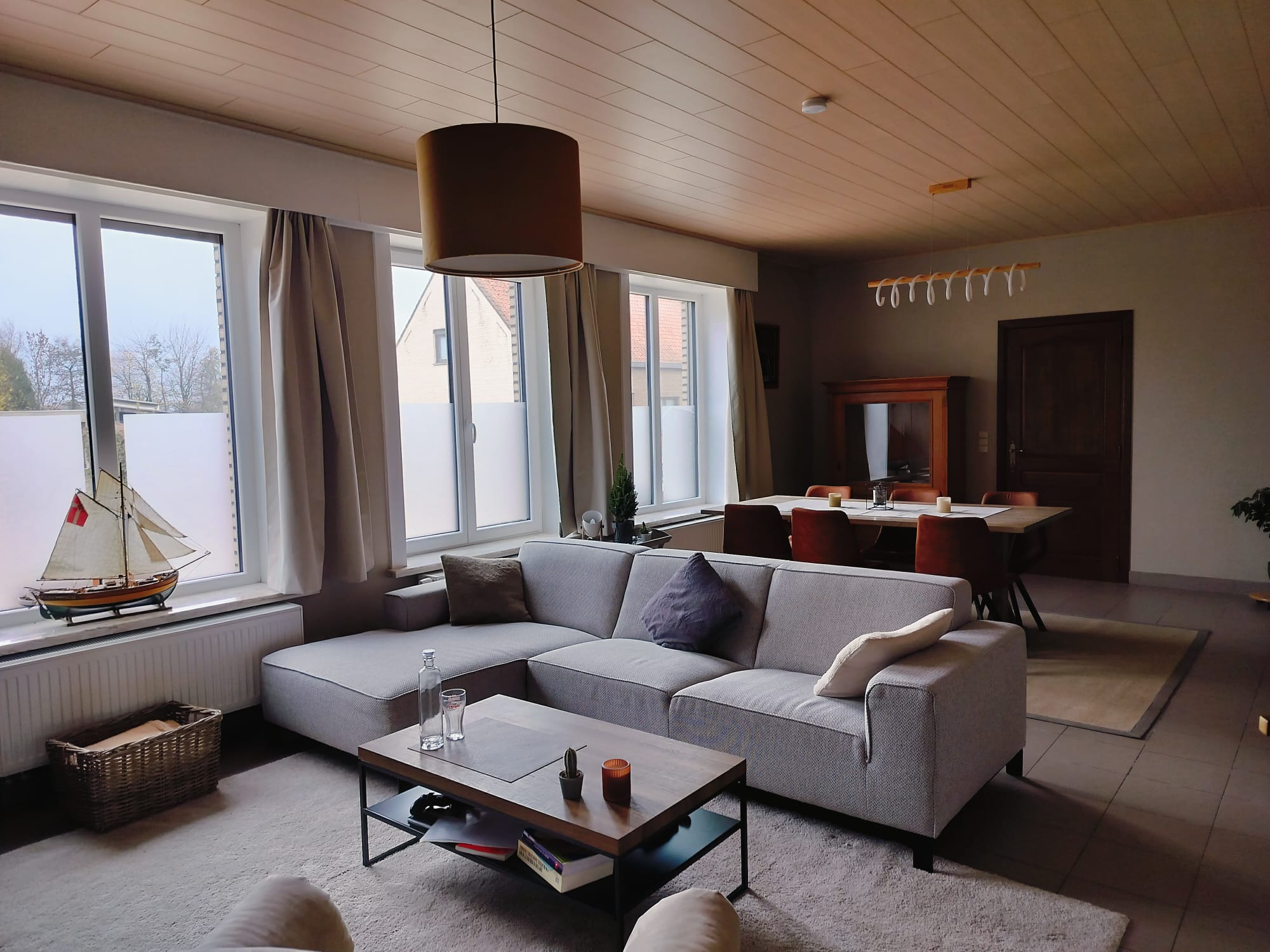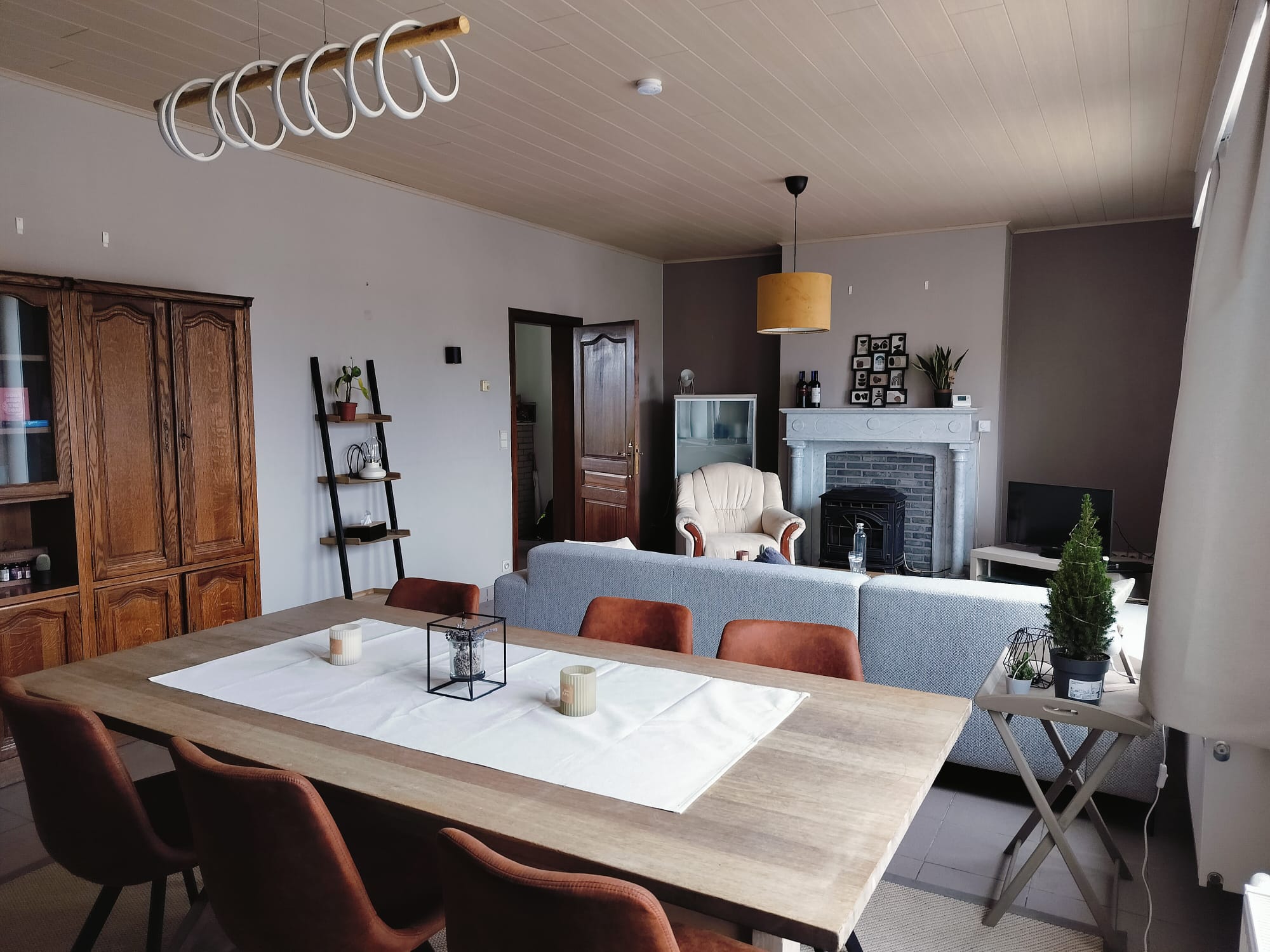 - Eetkamer en salon met tv en gezelschapsspellenkast (die nog wel wat opvulling kan gebruiken)