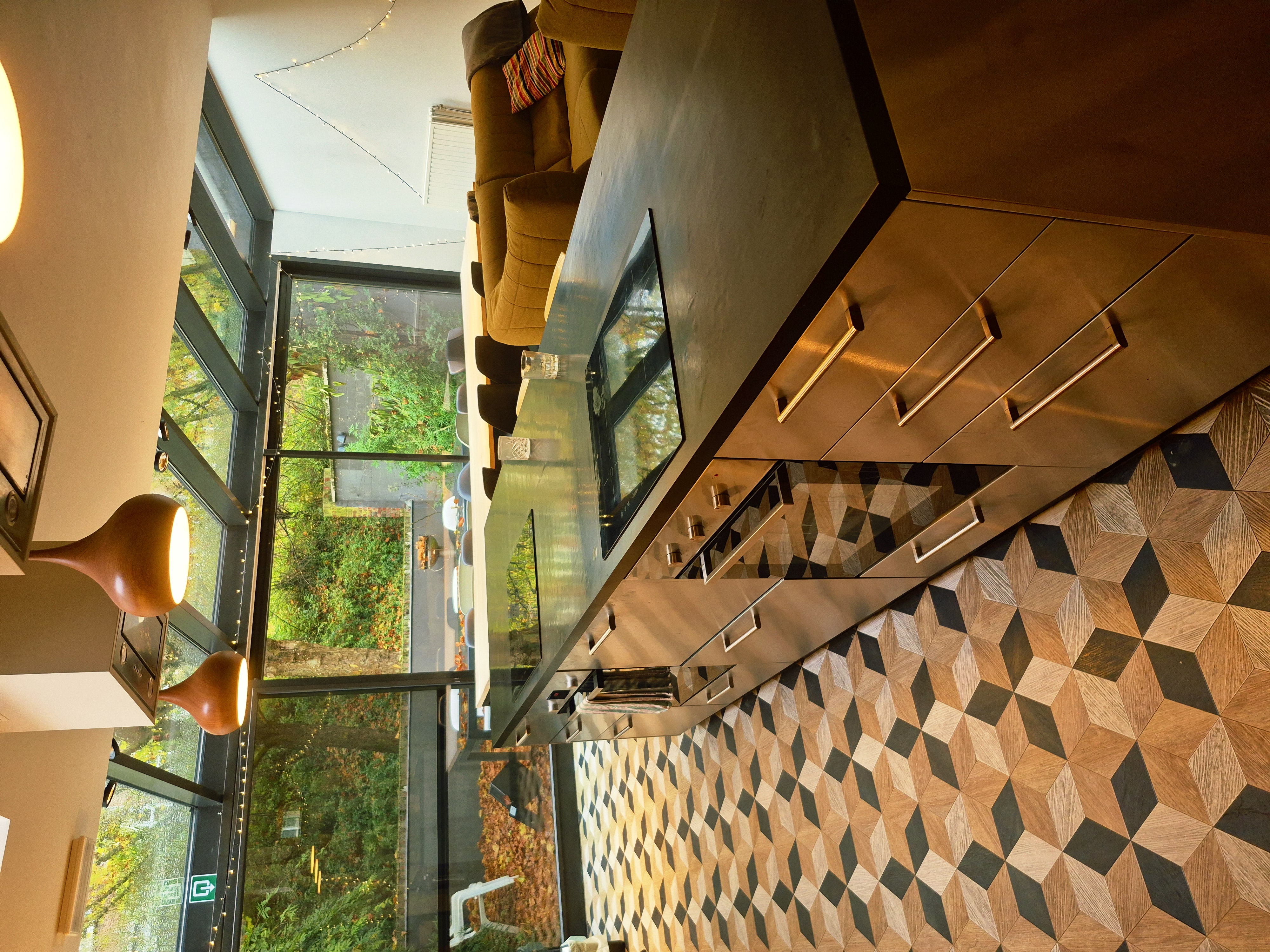 Ook nog in dezelfde ruimte als de keuken en living: eethoek met tafel voor 12 personen. Aan deze tafel doen we soms ook gezamenlijk home office 💻.
