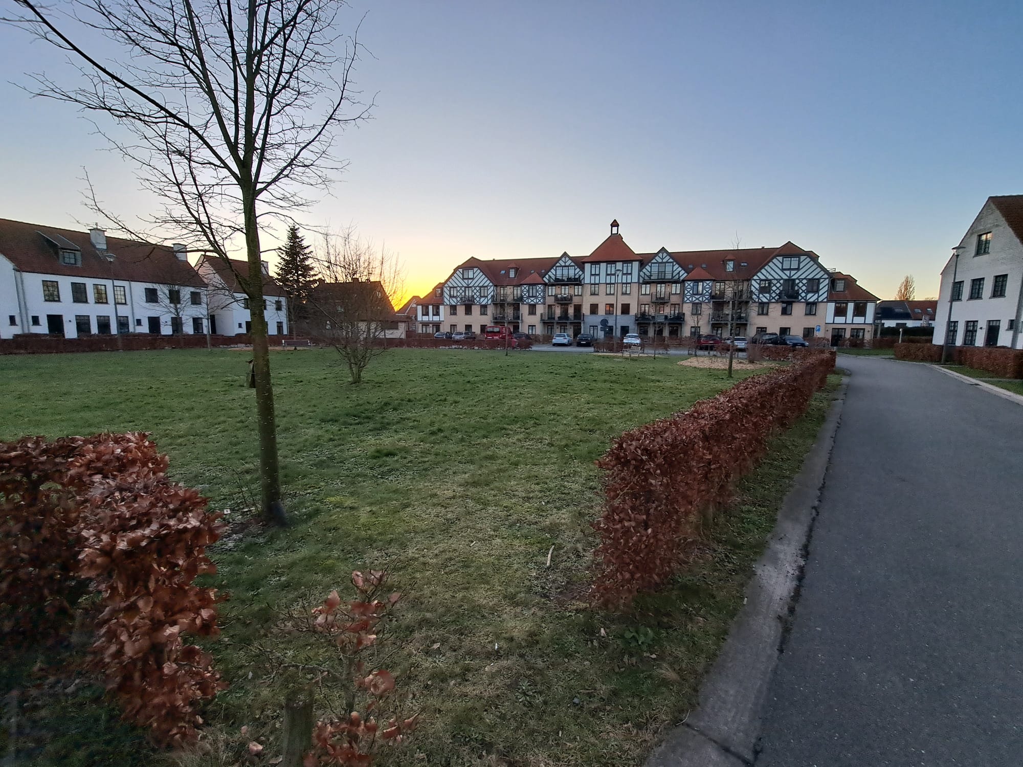 Recente open bebouwing in rustige groene omgeving met doodlopende straat. Eigen oprit voor auto + garage voor 1 fiets